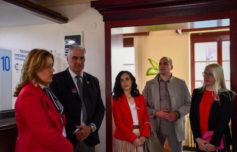 Pomoćnica direktora Kancelarije za IT i eUpravu, zamenik gradonačelnika Grada Čačka, Vladan Milić, programska direktorka u NALED-u, Jelena Bojović i projektna menadžerka Programa Ujedinjenih nacija za razvoj, Sanja Arizanović obišli su promotivni štand i razgovarali sa građanima i građankama.